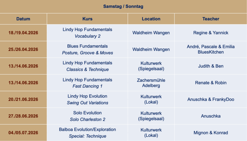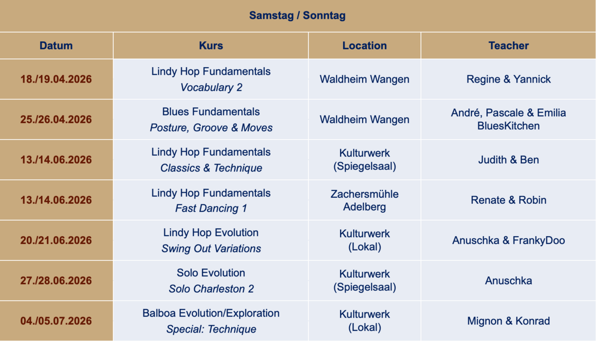 Im Folgenden stellen wir Dir alle Infos für die Wochenend-Intensivkurse zusammen. Unterhalb der Übersicht findest Du jeweils alle Informationen für jeden Kurs zum Aufklappen.